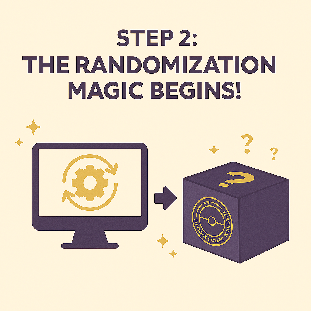 Our custom-built bot takes over! It randomly selects the Pokémon packs for each MTB, ensuring every box is unique. Then, it randomly assigns each MTB to a lucky collector like you!